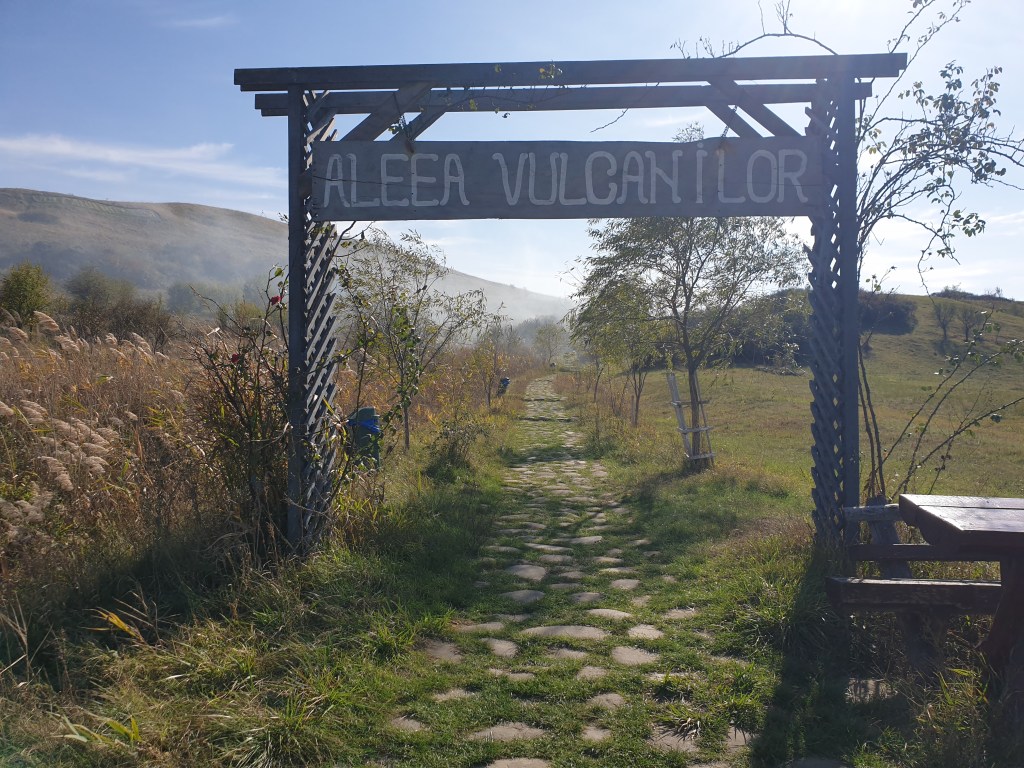 En este camping aparcamos (el estacionamiento cuesta 3 lei por vehículo para todo el día), y vemos que se inicia un sendero llamado Aleea Vulcanilor (Callejón de los Volcanes), que nos lleva hacia la entrada a los volcanes.