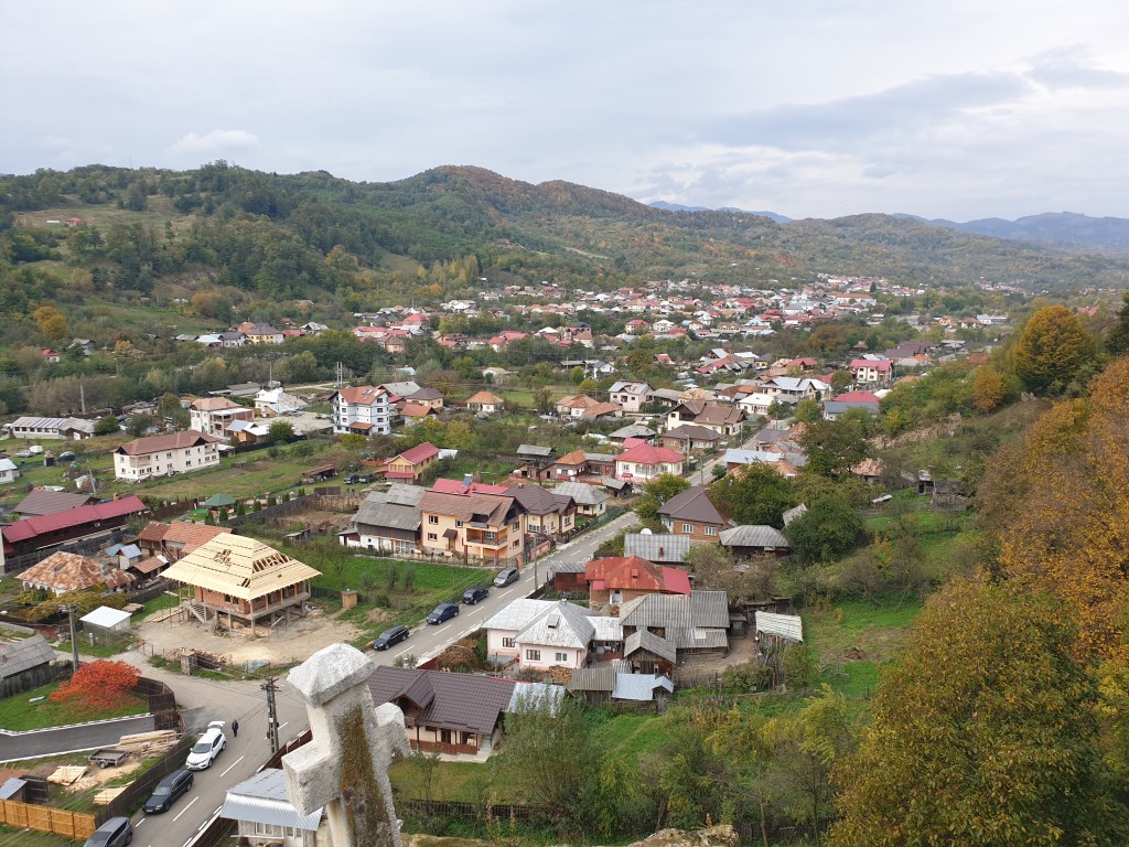 Tras subir a lo alto de la roca observamos una bonita panorámica del valle del río Doamnei, con las montañas de los Cárpatos Meridionales al fondo.