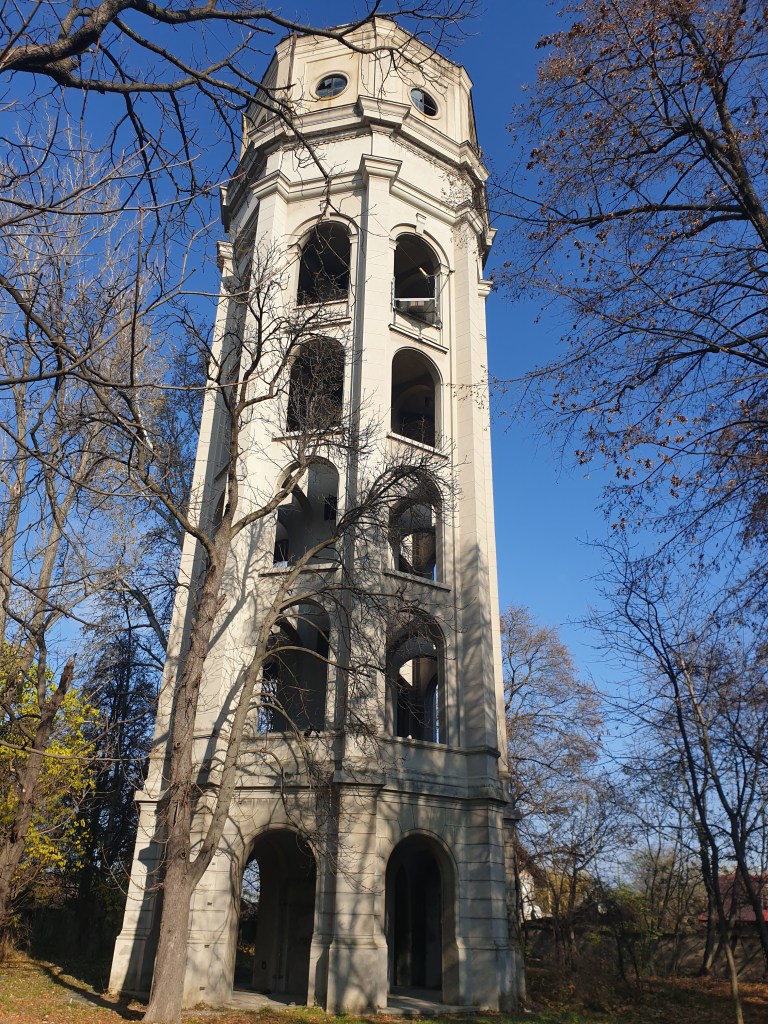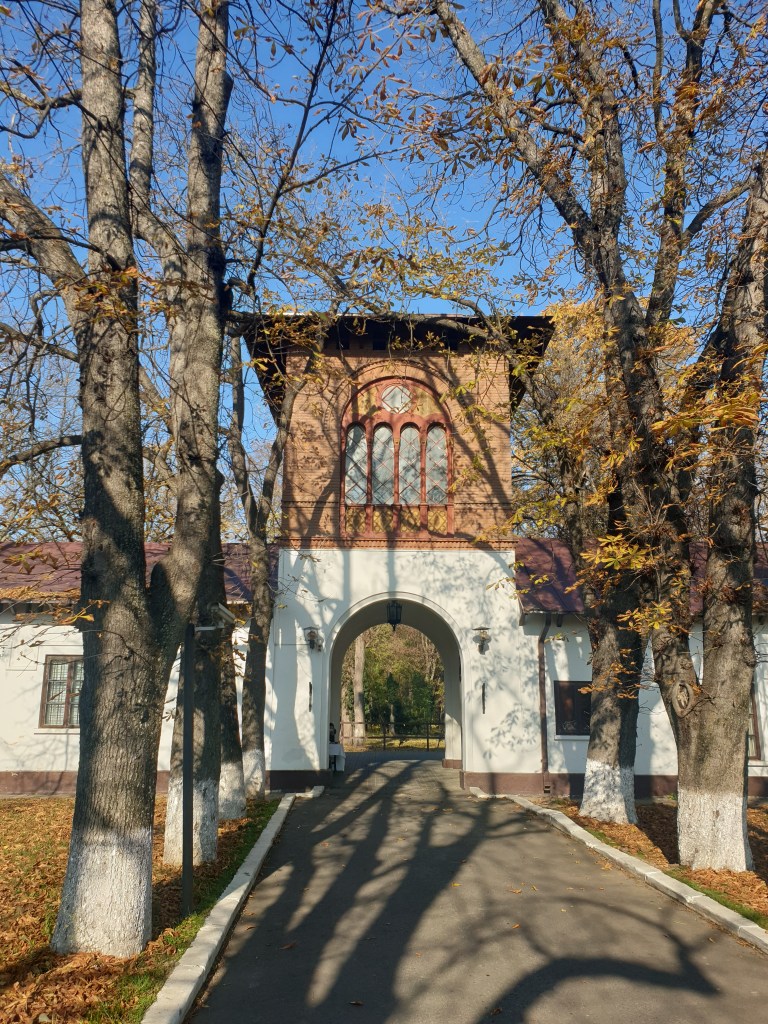 Tras cruzar la torre de entrada, enseguida llegamos al palacio Stirbey: un gran edificio pintado en blanco, de 3 pisos de altura y con un marcado estilo romántico, con detalles góticos, que en la actualidad funciona como restaurante.
