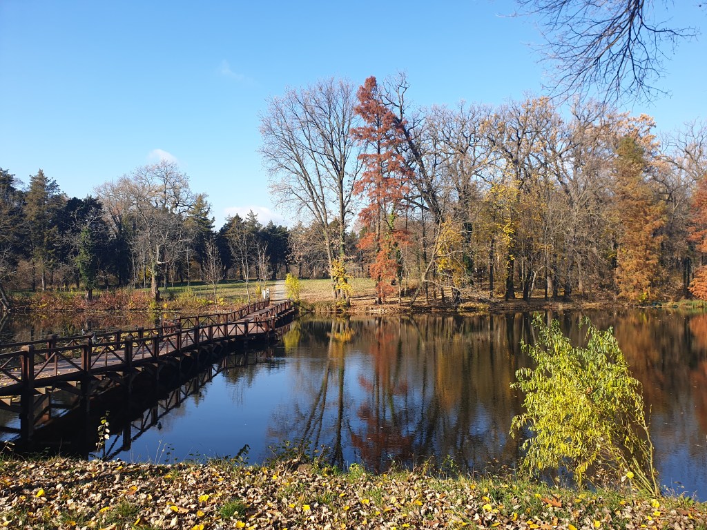 En la parte trasera del palacio arranca el sendero que nos lleva hasta al lago, que se puede cruzar por el puente de madera. A continuación, el mismo sendero nos conduce hacia la capilla, una obra realizada en estilo neogótico.