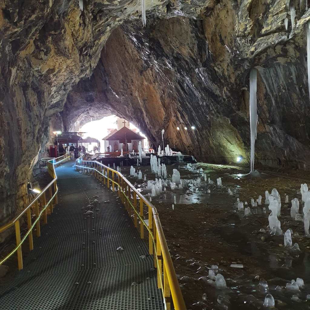 La entrada está conformada por una pequeña iglesia, perteneciente al monasterio que acabamos de dejar atrás. Una vez cruzada la puerta llegamos a la boca de la cueva, donde encontramos la taquilla para pagar la entrada: 10 lei los adultos, 5 lei los niños.