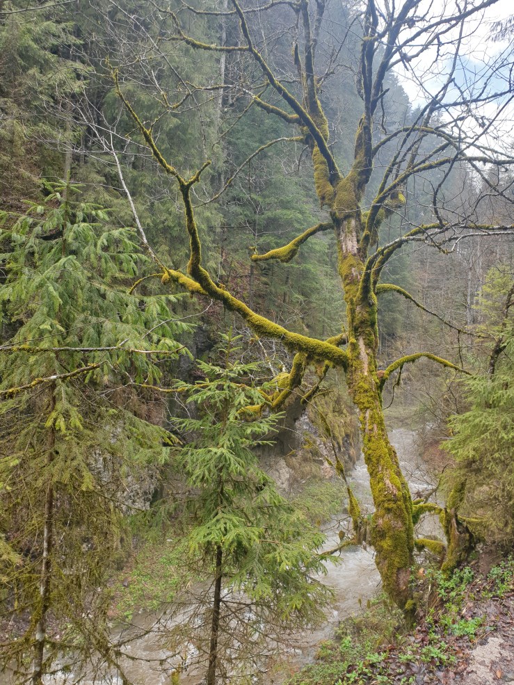 El camino es prácticamente llano y muy amplio, accesible para todo tipo de turistas, con vegetación densa y rodeado por amplias paredes de roca conocidas como las Gargantas de Valea Stanciului.