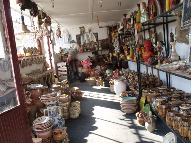 Nada más entrar en Horezu se puede ver a ambos lados de la calzada pequeñas tiendas con muchos productos de cerámica expuestos.