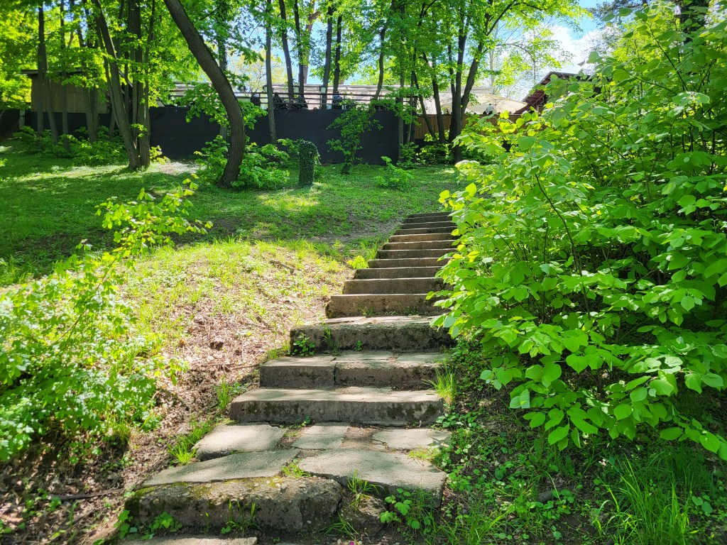 Desde el restaurante hasta la orilla del lago hay que descender como unos 30 escalones. Básicamente ese es el desnivel máximo que hay que afrontar, ya que a partir de ahí todo el recorrido es llano, por unos sendero bien delimitados que no exigen ningún esfuerzo reseñable.