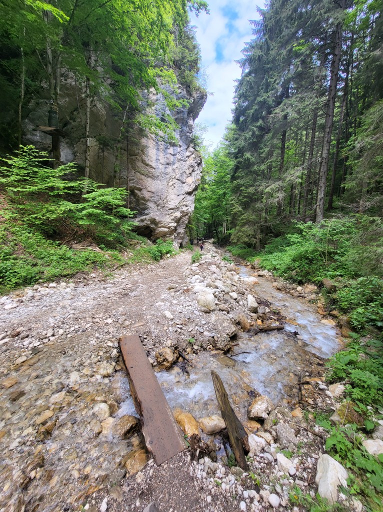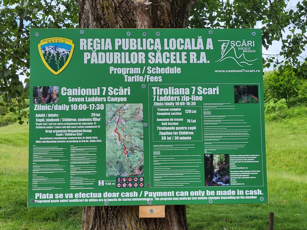 Desde la barrera las instrucciones son claras: hay que subir hasta la entrada del cañón por un recorrido fácil de unos 45 – 60 minutos, tras lo cual habrá que pagar un billete de entrada de 20 lei para acceder al cañón y cruzarlo usando un sistema de escaleras metálicas.