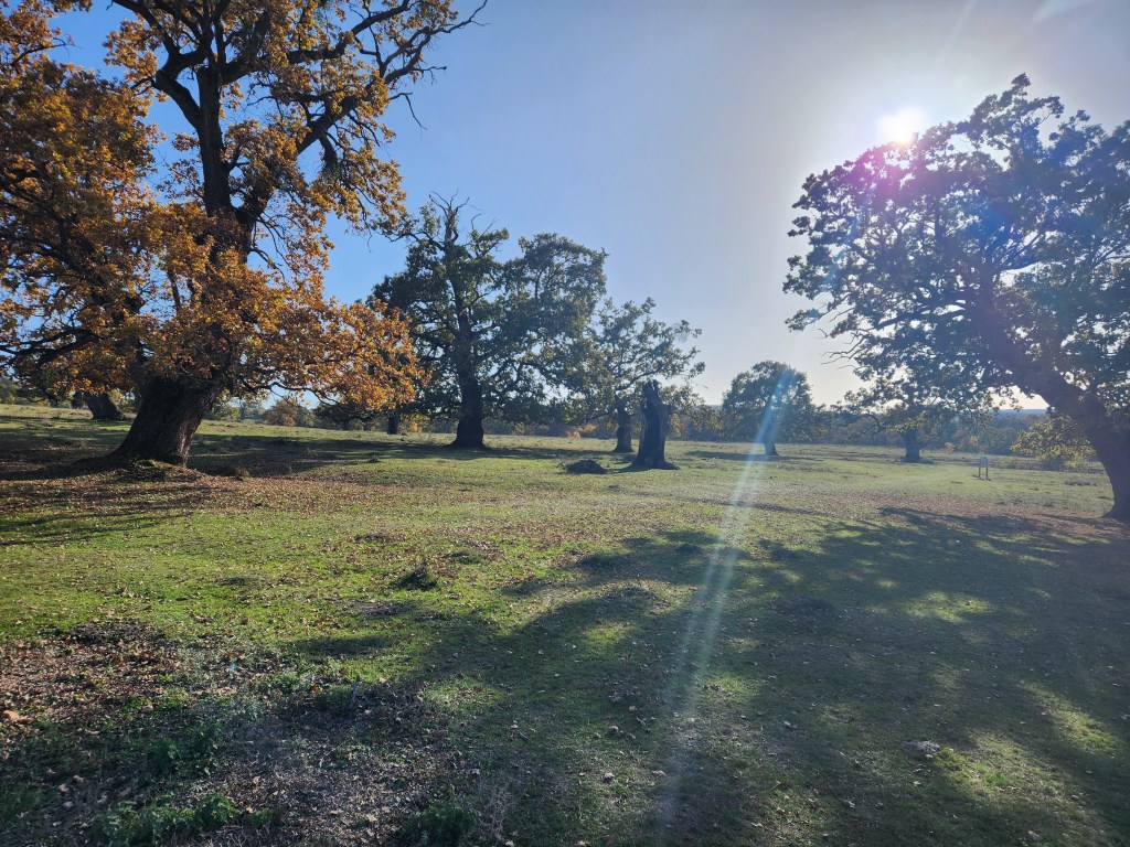 En este prado con robles centenarios nos dirigimos hasta el elegido, que es fácil de localizar porque tiene una valla de madera a modo de protección y dispone de un panel informativo.