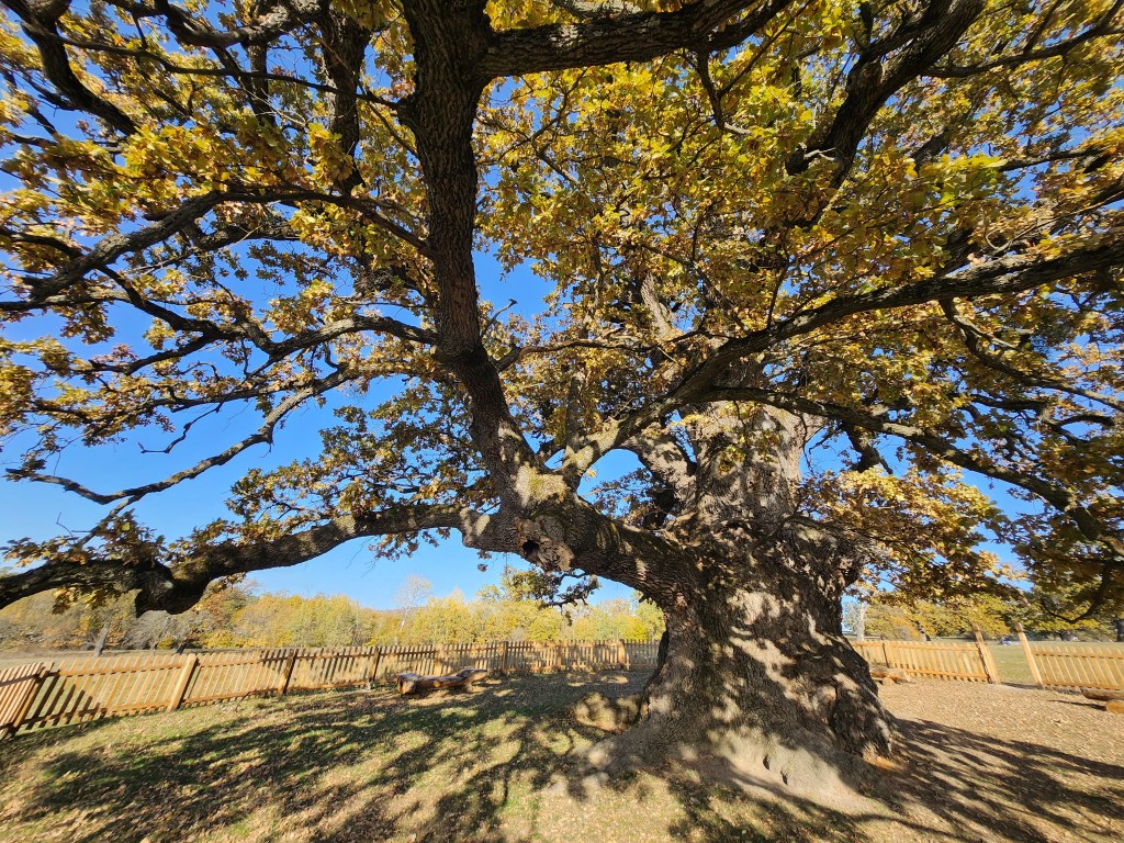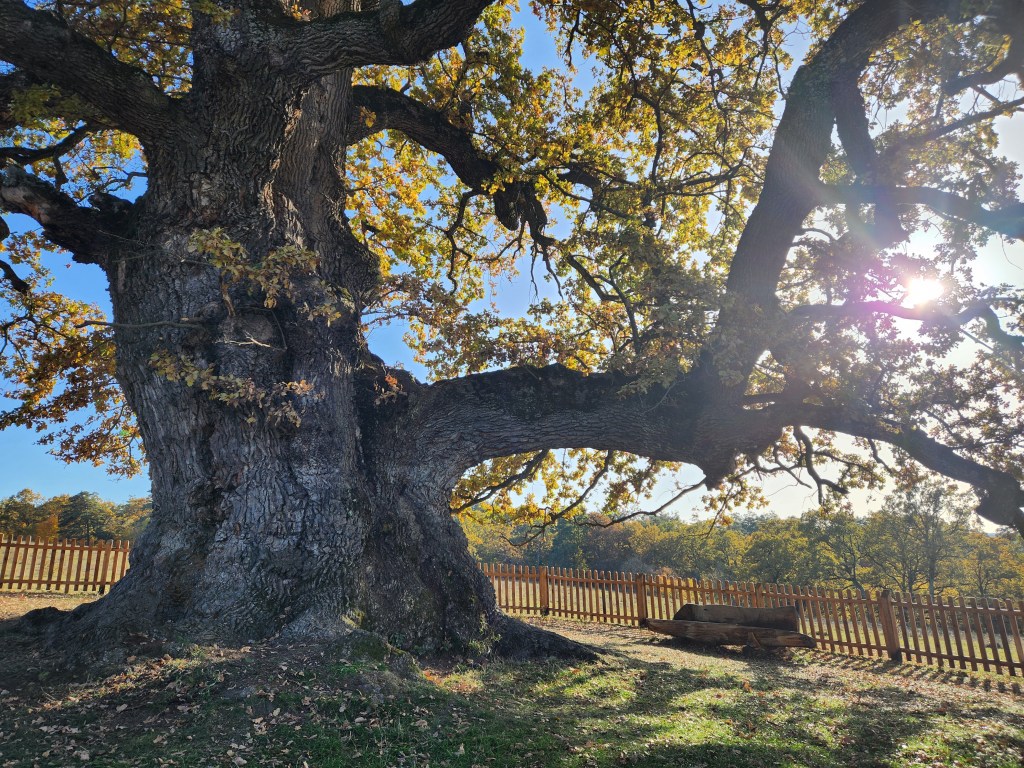 Este ejemplar de la especie de «quercus robur» (roble común) tiene una edad calculada en torno a los 900 años, edad obtenida mediante cálculos estadísticos.